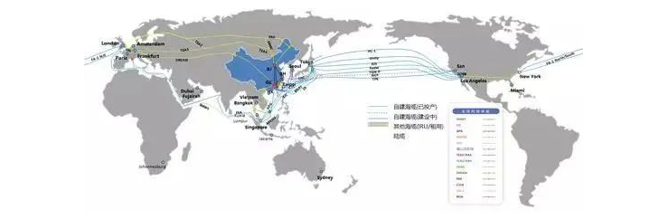 目前在全球63条海缆上拥有资源,其中参建海缆11条,深度覆盖亚太、通达欧美、一带一路国家地区。