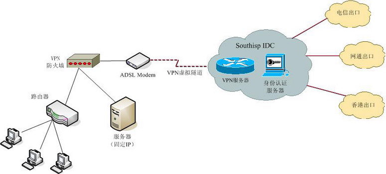 固定IP专线上网,在现有的ADSL拨号光纤基础上提供一台我司的设备拨号到我们中心机房,就可以给予固定IP(海外固定IP都可以)的应用。